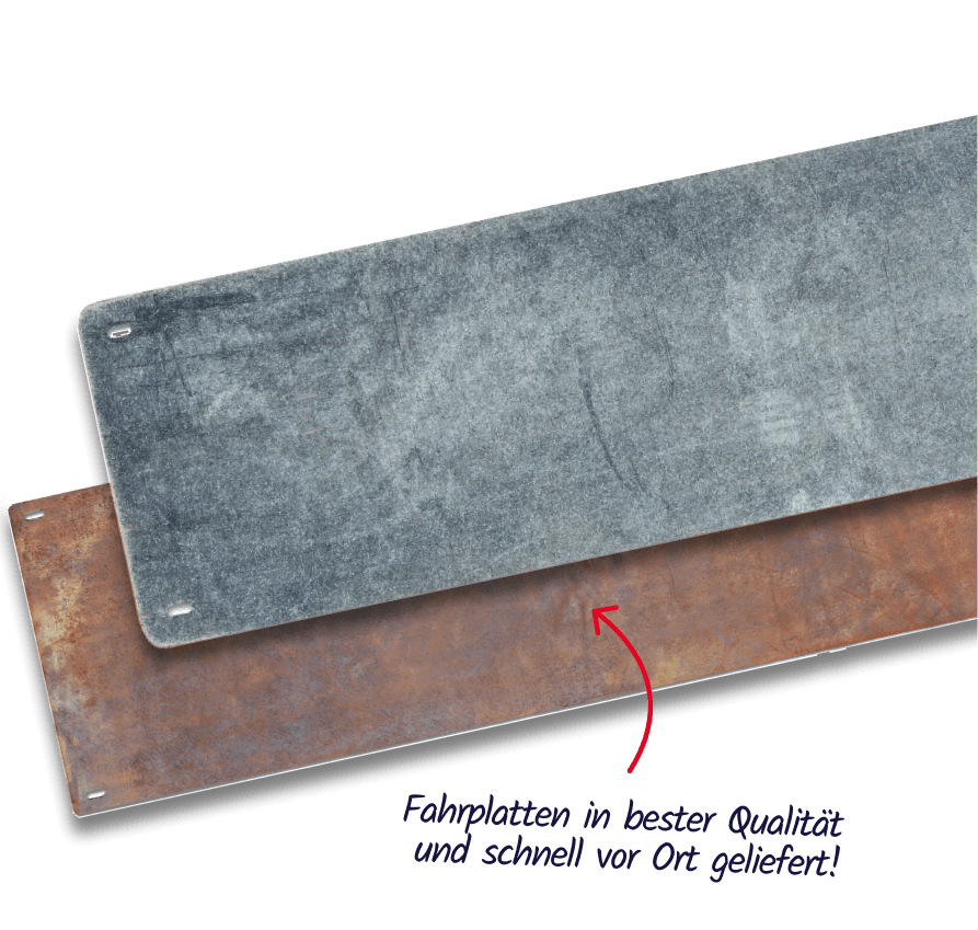 Aufgrund unsere langjährigen Erfahrung in der Vermietung wissen Wir genau, was der Kunde braucht. Fahrplatten in bester Qualität schnell vor Ort geliefert! Ein Anruf genügt und fertig! Die VM Group arrangiert alles für Sie nach Ihren Wünschen.